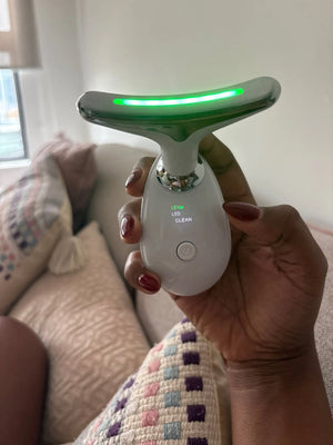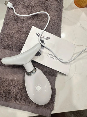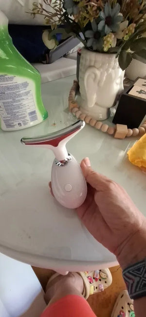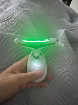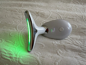 Unlike others, this device combines ion cleansing, microcurrent, warmth, and multi-color LED to target neck, double chin and facial lines for real visible tightening.